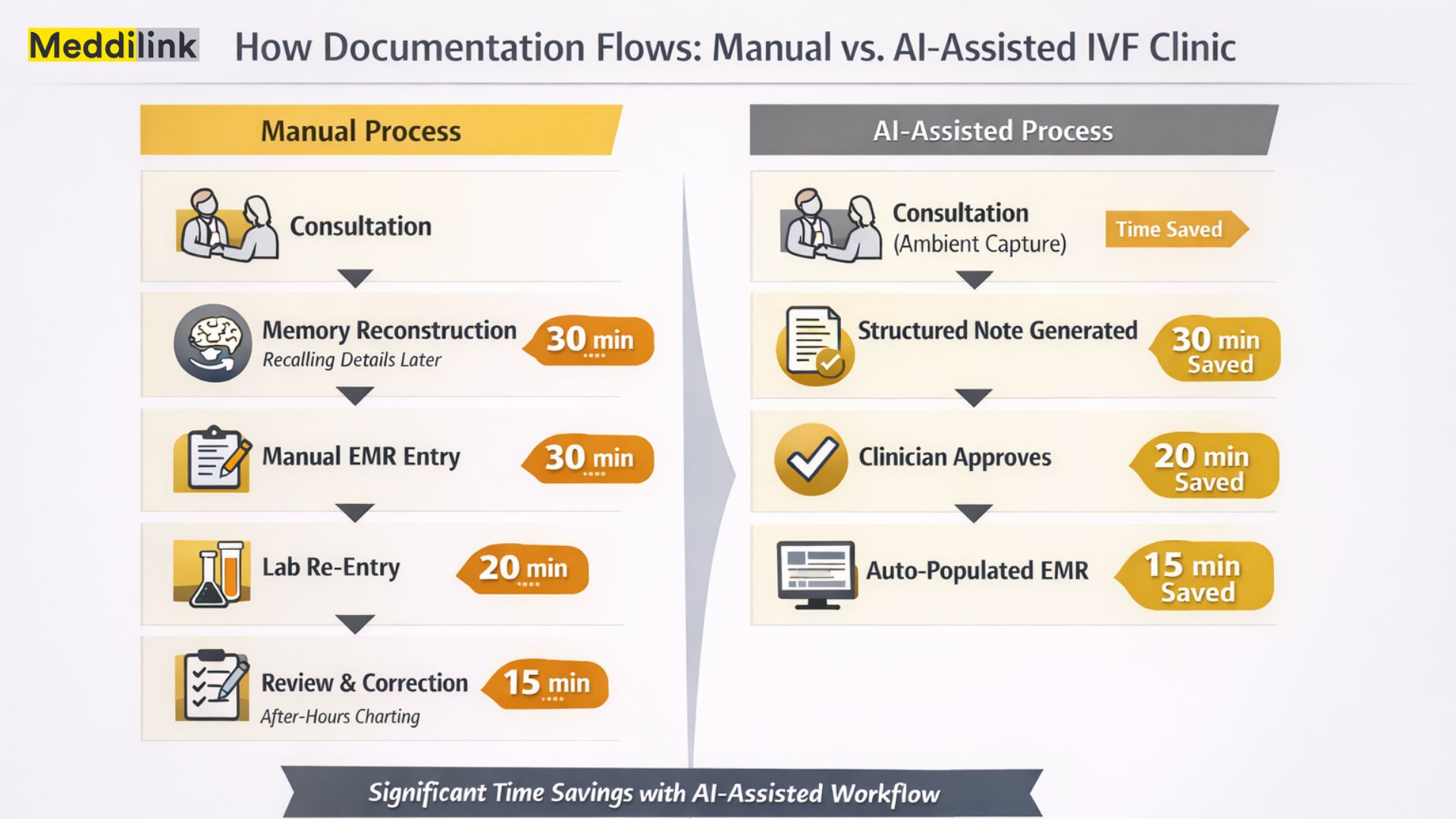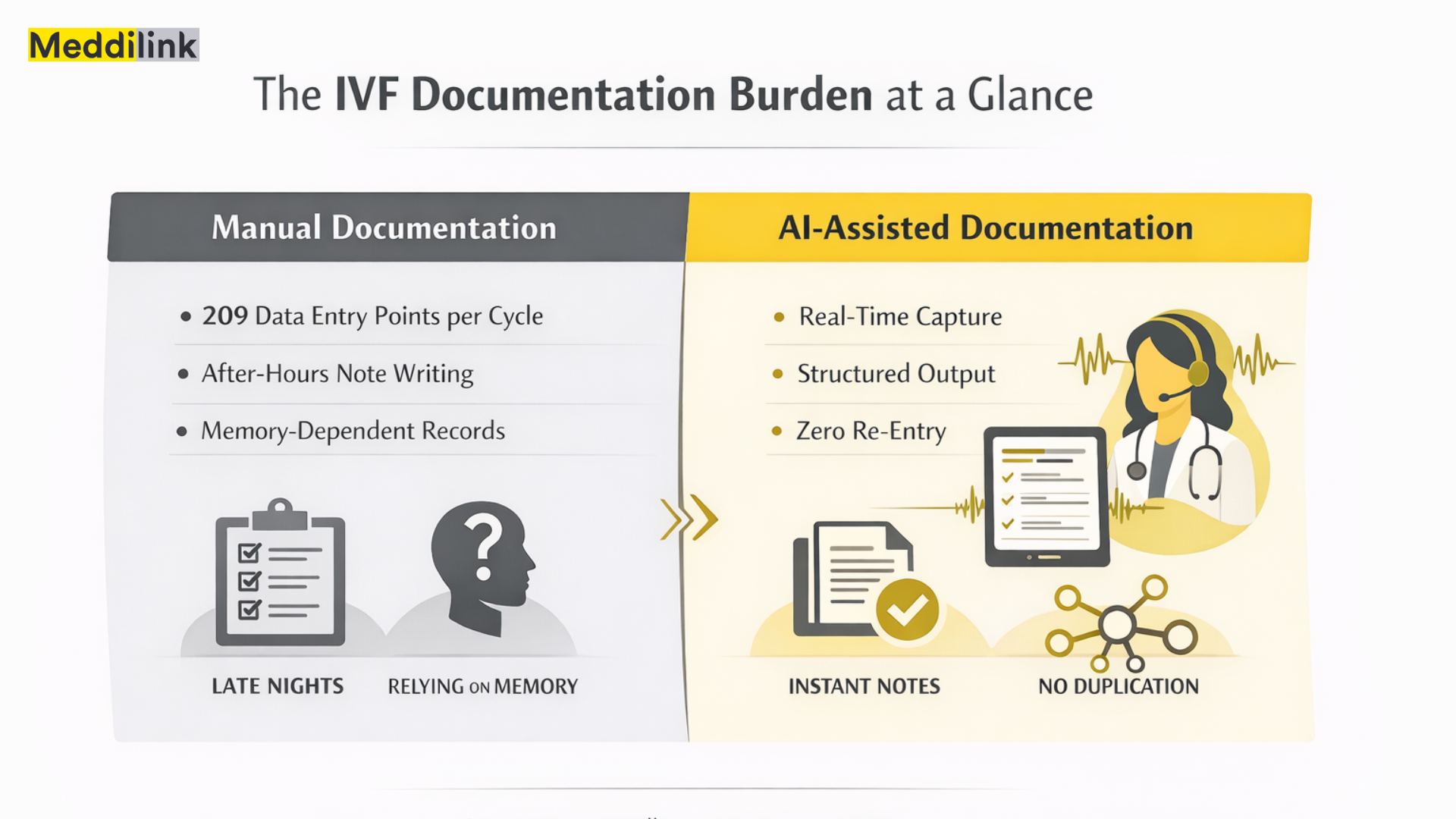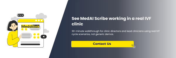 This article explains the problem, what the evidence says about AI scribes, and how MedAI Scribe addresses the specific demands of IVF workflows.